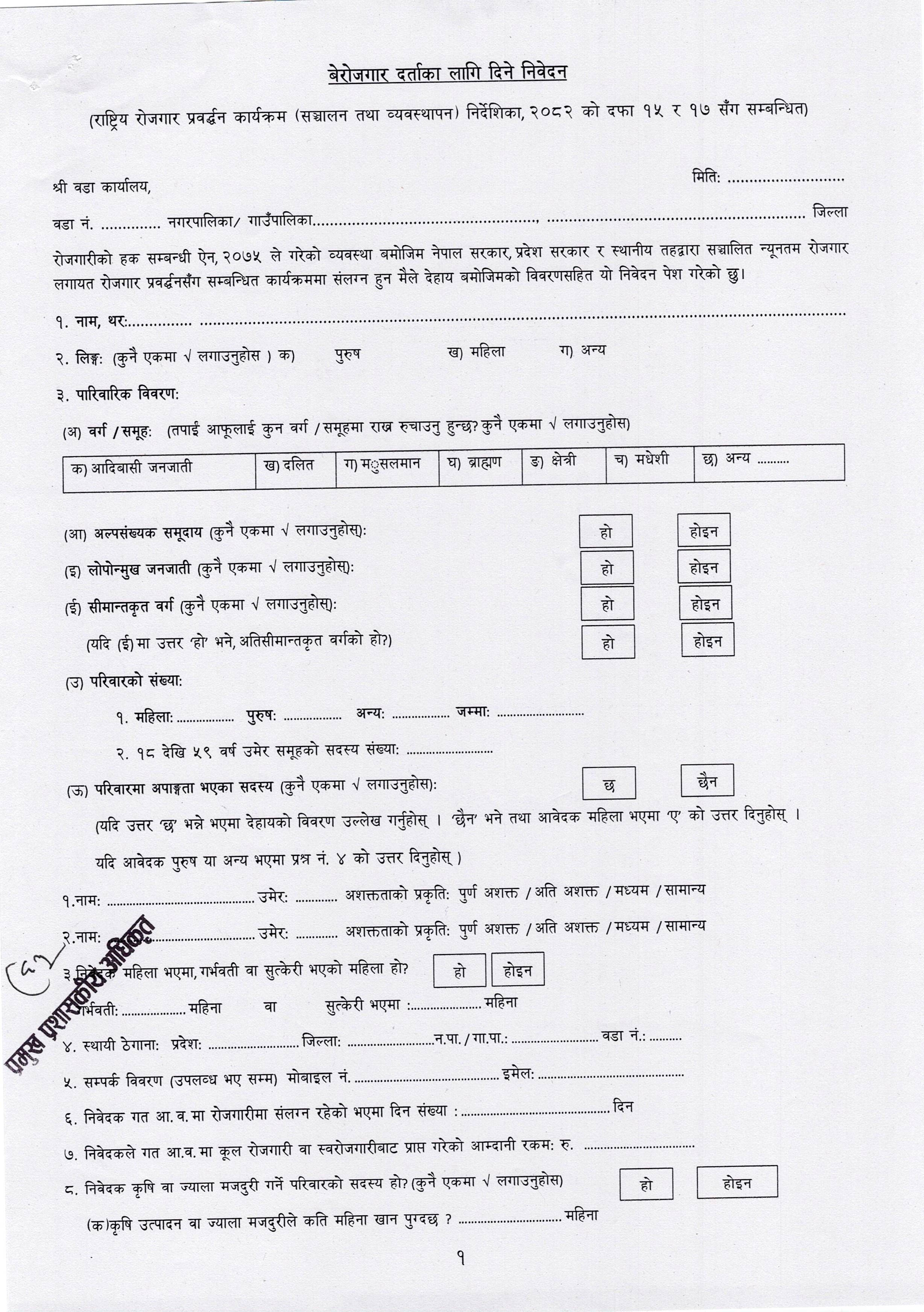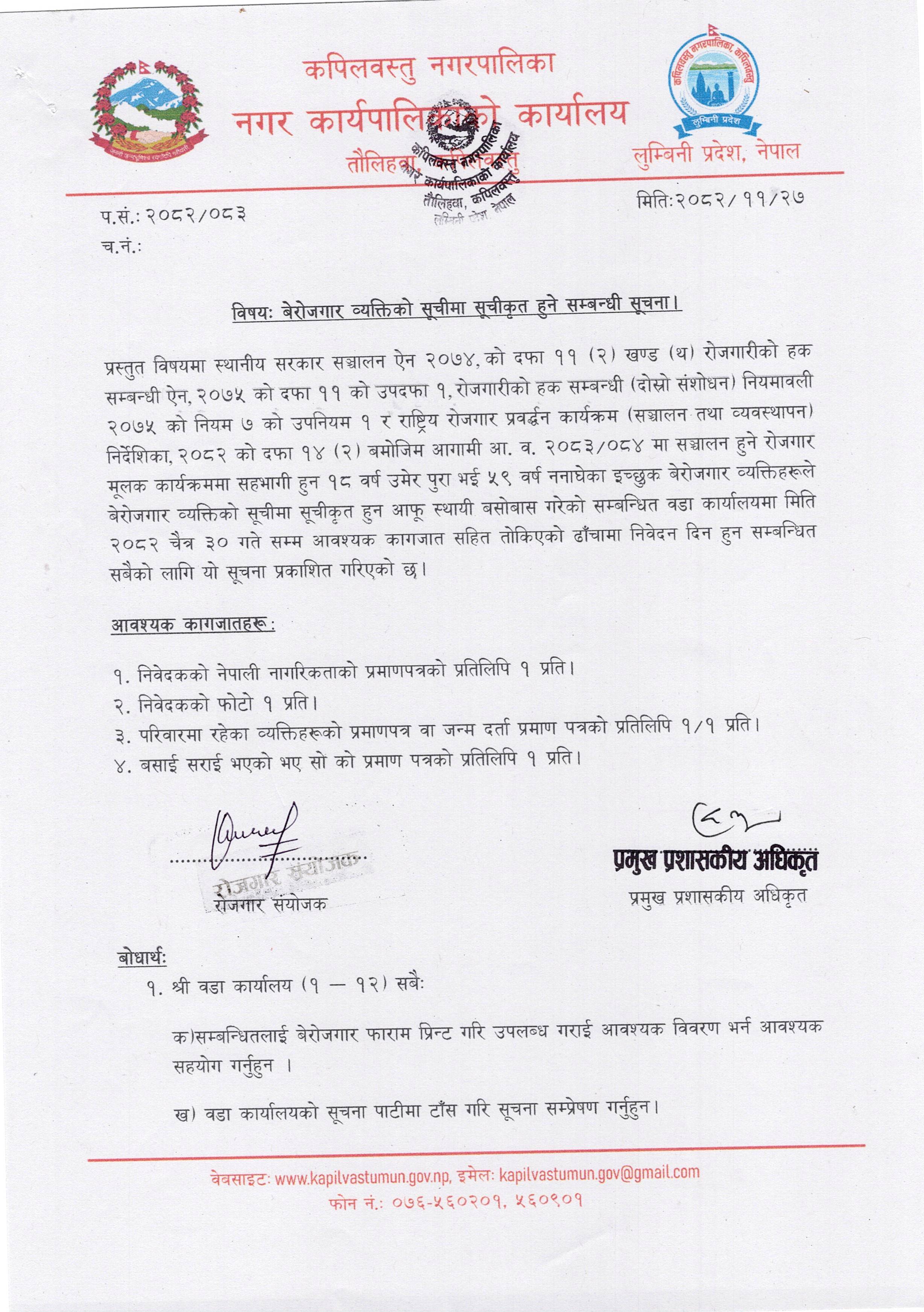 बेरोजगार व्यक्तिको सूचीमा सूचीकृत हुने सूचना