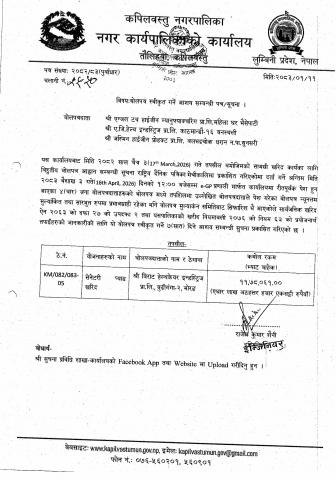 बोलपत्र स्वीकृत गर्ने आसयको सुचना
