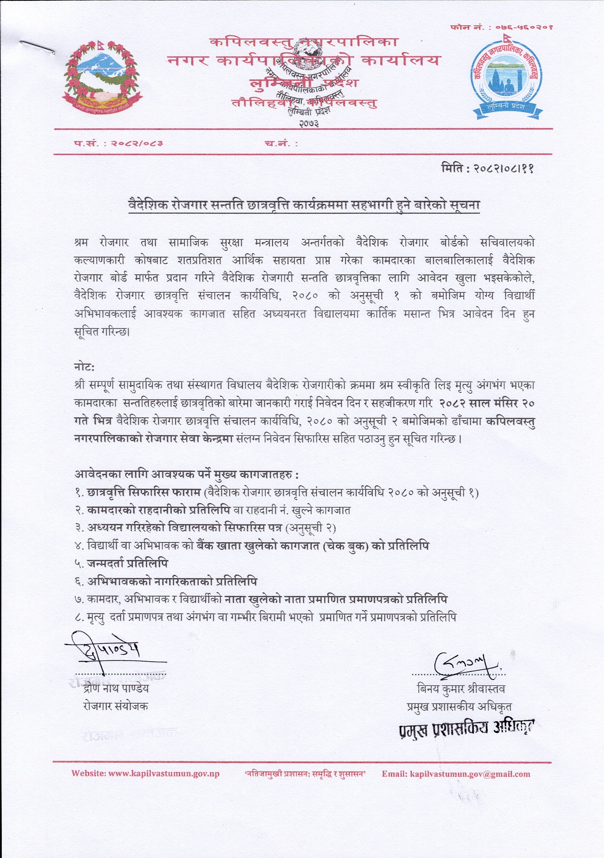 वैदेशिक रोजगार सन्तति छात्रवृत्ति कार्यक्रममा सहभागी हुने बारेको सूचना ।