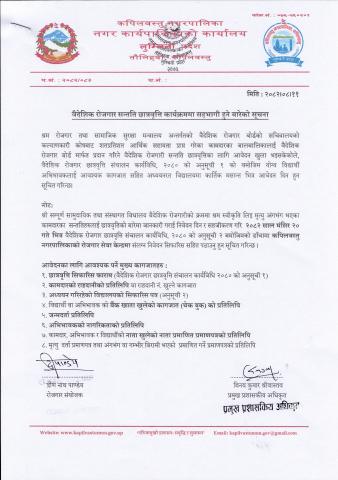 दर रेट पेश गर्ने सम्बन्धी सूचना ।
