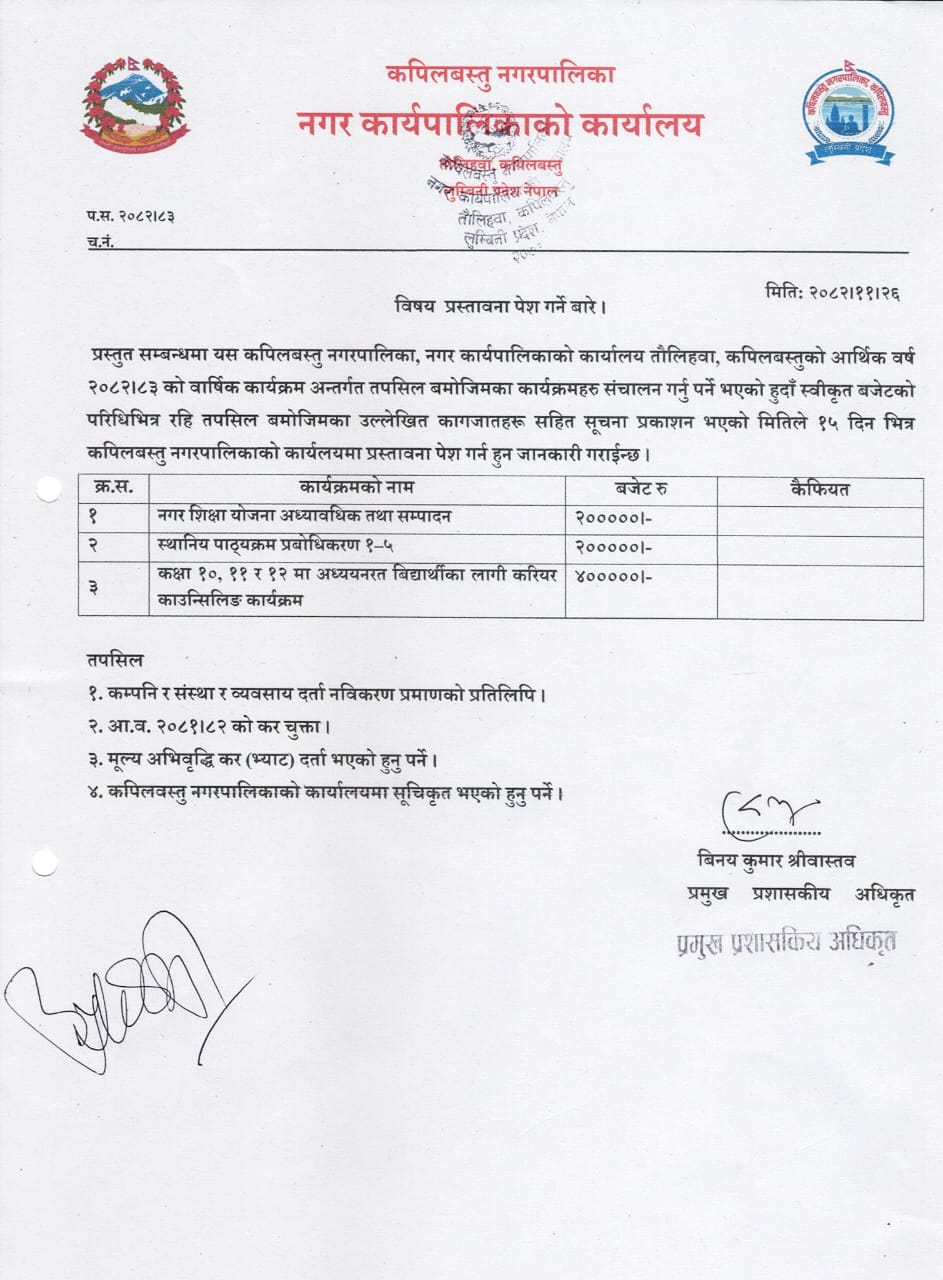 कपिलवस्तु नगरपालिका नगर कार्यपालिकाको कार्यालय