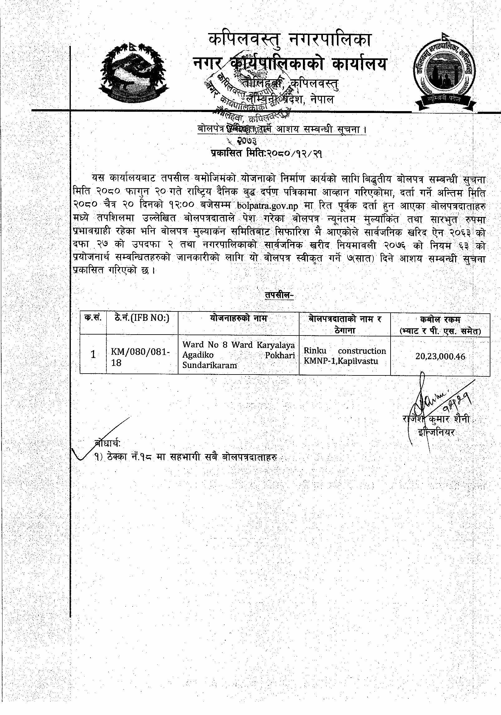 कपिलवस्तु नगरपालिका स्थानीय राजपत्र-२०७९